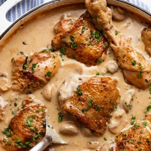 Chicken with Brandy Mushroom Cream Sauce (serves 4-6)